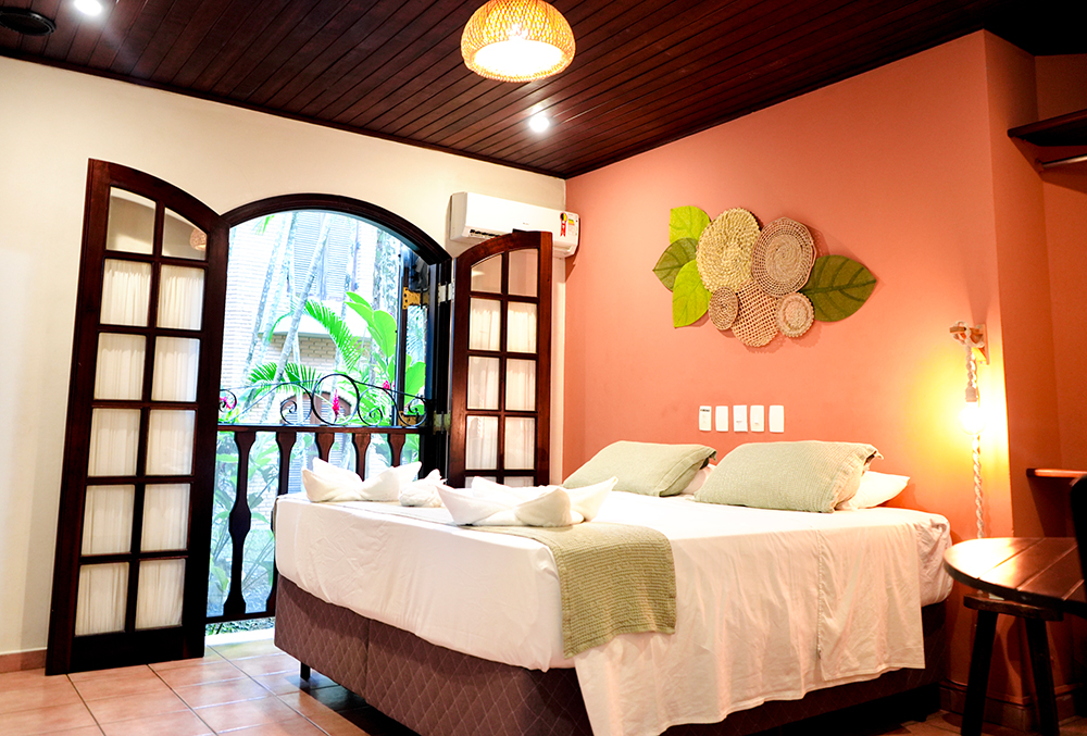 Localizados no prédio principal com vista para o nosso jardim interno e área da piscina.